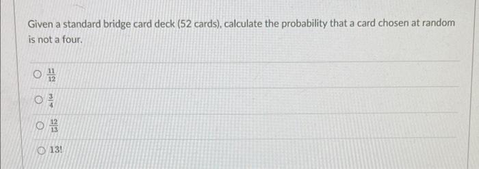 Solved Given A Standard Bridge Card Deck 52 Cards Chegg Com